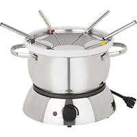 This item is WONDERFUL for chocolate fondue !! We previously attempted to use the gel/ Sterno type fondue sets which were extremely difficult to control the level of heat. This set works great w/ chocolate IF you place the heat setting on a very low set point. We started by placing hot water in the water pan (only need to place in 1/4 of pan)& pre melt chocolate in mircowave to soften before placing in stoneware pan. We did a 3 hour dipping event and did not have replenish the water in the pan at all! We got to enjoy the event vs. using the other type fondue sets; NO need to keep lighting and snuffing out the gel heat pots & dealing w/ steam escaping from the set !!!I strongly suggest if you are new at fondue or use of the electric method, "experiment" with this item before your event. Beside burning off the the acrid odor (make sure you read instructions and I recommend the initial "burn-off" be done under a kitchen exhaust hood) you'll eliminate any potential "hick-ups" if you're having a group over. ENJOY !